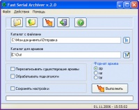 Программа для архивирования группы файлов.Каждый файл упаковывается в собственный архив.Программа последовательно берет каждый файл из указанного каталога, архивирует его и складывает в целевой каталог для архивов.Работа возможна как через графический интерфейс так и из командной строки.