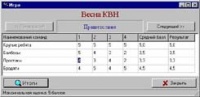 Поддержка игр КВН. Обеспечивает быстрый ввод оценок за выступления команд в конкурсах, отображение средних баллов и общих оценок за игру. Есть возможность распечатать на принтере протокол окончательных оценок игры. Автор - Михаил Антропов (amv@dax.ru).