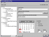 Многофункциональная утилита, совмещающая в себе планировщик и напоминатель. Вы можете планировать запуск программ, открытие документов и веб-сайтов, завершение и рестарт Windows. Вы можете создавать однократные, ежедневные и ежемесячные события. Все элементы планировщика представлены в виде дерева с заданными пользователем комментариями.