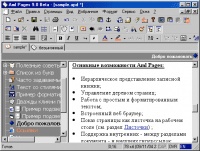 Aml Pages это очень небольшая, древовидная записная книжка. Позволяет хранить разнообразную текстовую информацию. Позволяет работать как с обычным текстом, так и форматированным, может представлять данные как веб страницы. Встроенная система стиков с развитыми возможностями. Если Вам необходимо часто и много систематизировать различную информацию, и нет времени на ее классификацию или поиск то взгляните, не пожалеете. Основные возможности Aml Pages: древовидное представление данных; работа с простым и форматированным текстом; представление данных в виде веб страниц; огромное количество популярных команд для работы с текстом; встроенный автотекст; встроенные стили оформления форматированного текста; встроенная система стиков (плавающих окошек); развитая система экспорта и импорта данных; собственный формат данных с множеством настроек; управление часто используемыми файлами; встроенный алгоритм сжатия данных при сохранении; поддержка шифрования и установки пароля на открытие файла; поддержка избранного и истории навигации; настройка пользовательского интерфейса (тулбары, меню, горячие клавиши и т.д.); минимальная зависимость от операционной системы и ее конфигурации; синтаксическая подсветка; и многое, многое другое.