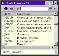 Словарь, содержащий более 200 смайликов и 100 акронимов с толкованием на русском и английском языках. Незаменима для завсегдатаев чатов IYKWIMAITYD и просто желающих пополнить свой словрный запас :>. Автор А.Ченцов (duke@cyberpunk.ru).