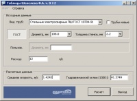 Программа является имитатором Таблиц Шевелева Ф.А. для гидравлических расчетов напорных трубопроводов. Расчеты производятся по заданным значениям расхода воды, вида и диаметра трубопровода. Имеется возможность задавать произвольный расчетный диаметр.