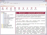 "Цифровая кулинарная книга, содержащая более 3300 статей из разных источников. Статьи классифицированны по разделам и категориям. Имеется возможность полнотекстового поиска рецептов по частям (название, список продуктов, текст рецепта и т.д.). При этом каждая статья представляет собой гипертекстовую страницу с ссылками на другие статьи."