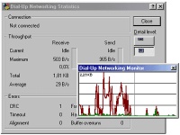 Dial-Up Networking Monitor - Утилита, с помощью которой можно отслеживать различные параметры dial-up соединения, в том числе скорость соединения и количество переданных и принятых данных.