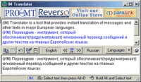 ICQ Translator - Система перевода для ICQ, построенная на основе системы машинного перевода компании PROMT. Допустим перевод "на лету" фраз с английского, французского, немецкого, итальянского и испанского языков на русский и обратно. Полезная вещь, если вдруг появится необходимость пообщаться с собеседником, говорящем на другом языке...