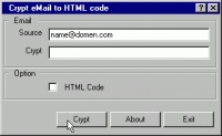 Программа предназначена для кодирования email адреса в строке mailto HTML кода страницы - предотвращает сканирование ваших адресов спамерами. Автор - Мироводин Д.А. (mirovodin@mail.ru).