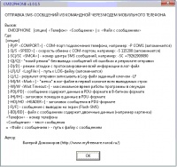 CMD2PHONE - программа отправки SMS-сообщений из командной строки через сотовый телефон подключенный к компьютеру.Программа работает только из под Windows, возможен запуск из командного файла.Дополнительной возможнстью программы стала возможность отправки мелодий, картинок и т.п.