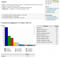 Это набор PHP скриптов, который поможет Вам получить статистику Вашего веб-сервера.Варианты статистики: - по броузерам за день, неделю, месяц; - по дням, часам, неделям; - по языкам за день, месяц, неделю; - по рефферерам за день, месяц, неделю; - получение отчетов по E-mail, в виде Excel и CSV файла; - 3 вида графического отображения статистики; - рекордный день и количество посетителей; - 3 вида счетчиков (текстовый, счетчик и график).Система "Статистика" предоставляет возможность анализировать посещаемость сайта, выбирать наиболее эффективные рекламные площадки, изучать активность аудитории сайта и многое другое не используя при этом mySQL базу.