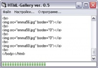 Новая версия программы для создания HTML-галлерей с предпросмотром. Выберите нужные картинки и всё! Картинки можно располагать строками или столбцом. Можно сделать картинку ссылкой. Допустим, на странице отображается уменьшенная картинка, а при нажатии на неё, она, в нормальном размере, откроется на новой странице.
