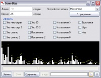 SoundRec может производить запись звука с микрофона, с выхода звуковой карты, с модема и т.д. Можно применять большое количество звуковых фильтров. Звук сохраняется в WAVE формате. Есть возможность экспорта сохраненного звука в формат OGG Vorbis.