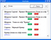 PolyFinder - программа для поиска полифонических мелодий в интернете. Скачивание и прослушивание мелодий без захода на сайты. Форматы пойска mmf, midi, mp3, wav.