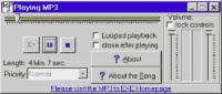 Создает из mp3 файлов файлы *.exe, не требующие mp3-проигрывателя для их воспроизведения. Позволяет включать информацию о песне, ссылку на домашнюю страницу, настраивать внешний вид при воспроизведении, задавать ограничения по дате, после которой файл перестанет запускаться. Право на коммерческое распространение *.exe файлов требует регистрации.