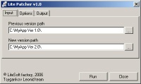 Программа предназначена для создания обновлений (патчей). Выполняет анализ двух директорий предыдущей и новой версий обновляемого приложения и на основе разницы (новые, измененные, удаленные файлы и каталоги) создается патч (.exe файл). В изменных файлах определяются и формируются в патч только изменные участки кода.