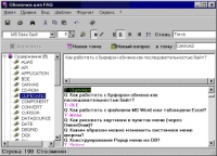 Оболочка для FAQ по любому языку программирования. Программа уже содержит файл со значительным набором вопросов по Delphi на русском языке. Обеспечивает легкую навигацию по темам и вопросам. Файл справки хранится в формате RTF, что дает гибкие возможности по форматированию текста. Автор - А.Побережный (andrewp@paco.net).