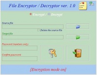 Программа позволяет кодировать и декодировать файлы любых форматов. Сама программа - 1 файл, инсталляция не требуется. Пароль нигде не сохраняется, что обеспечивает высокую степень защиты! Программа имеет красивыи и понятный интерфейс.
