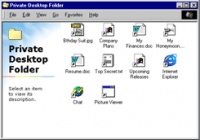 Утилита, позволяющая создать на вашем компьютере дополнительный, защищенный паролем от других пользователей рабочий стол, на котором могут храниться файлы и папки, не предназначенные для чужих глаз. Доступ к дсекретному десктопу осуществляется через иконку в панели задач (значок может быть очень маленьким или вообще "невидимым").