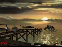 Две романтические заставки - закат и лунная ночь у моря. Очень реалистичные графика (пейзаж), анимация (бег волн, кружение чаек), и звуковые эффекты ( крик чаек, прибой).
