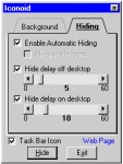 Iconoid - Эта программка умеет прятать иконки, расположенные на рабочем столе - стоит только завести курсор за край экрана, причем иконки исчезнут или мгновенно, или через определенный промежуток времени (это зависит от выставленых настроек). Кроме этого, Iconoid позволяет изменить цвет фона под названиями иконок (можно также сделать фон прозрачным) и цвет самой надписи, а также сохранять и автоматически восстанавливать позицию иконок при переключении разрешения экрана монитора.