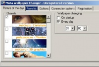 Возможности: работа со списком обоев, установка обоев из Интернет, установки обоев при запуске, установка обоев в определенное время, установка обоев через определенное время, изменение размеров изображения с использованием фильтров, работа через прокси сервер, ограничение скорости скачивания обоев из Интернета, ограничение ограничения размеров скачиваемых картинок."