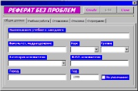 Программа "Реферат без проблем" - расширение для Word97 и требует наличия MSOffice97 на компьютере.Подключается просто: в меню "Сервис" Word97, в подменю "Шаблоны и надстройки" с помощью кнопки "Добавить" подключаем файл с программой. (Не забудьте разархивировать!) В панели инструментов появится кнопка "Создать реферат".Нажатием на нее вызываем программу. В чем суть программы? Кроме того, чтобы написать учебную работу, ее, как правило, необходимо оформить: создать титульный лист, содержание, расставить страницы, колонтитулы, поля, отформатировать заголовки.Используя встроенные возможности Word97, программа выполняет всю эту работу, при этом собирает содержание, и в случае документа большого объема, не придется думать о расстановке страниц в содержании.