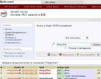 Уникальный веб-сервис в своём роде. Заносятся, сортируются все irc адреса с именами в базу данных, с последующей их сортировкой и отображением конечному пользователю через веб-интерфейс. К сожалению, рабочий сервис работает в локальной сети Ethernet и не доступен из интернета. Скриншоты можно посмотреть на сайте программы www.ircsearch.narod.ru