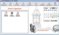 Extra-Organizer 2.11 - Описание разработчика:"Многофункциональный центр оповещения и контроля за важными событиями. Включает в себя мощную систему оповещений, календарь, напоминания, дела, заметки и будильник. Удобный, современный и одновременно простой интерфейс программы обеспечивает наиболее быстрое управление. Автоматический запуск и максимальная независимость от дополнительных действий пользователя гарантирует своевременное напоминание о важном событии."