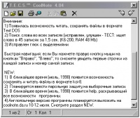 Удобный блокнот для хранения небольших записей. Находится в панели задач возле часов, быстро открывается, позволяет оперативно перемещаться между записями, осуществлять поиск. Ведет записи в формате Windows .txt, RTF и текста DOS. Не требует инсталяции. Авторы - С.Дурманов, А.Петров.