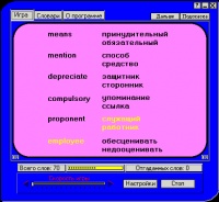 Пополнение словарного запаса иностранных слов.Обучение - как игра.Набор предустановленных словарей.Несколько режимов изучения иностранных слов.Словари можно создавать или редактировать самостоятельно - изменяя или дополняя их новыми словами.Конфигурируемый интерфейс.Имеется справочная система.