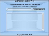 Программа предназначена для поздравления девушек. Очень часто случается так. что нужно поздравить много девушек, и хочется каждую поздравить оригинально, по особому, чтобы она оценила. Но ещё бывает так, что фантазии не хватает. Вот для таких случаев и предназначена данная программа. Она создаёт оригинальное поздравление, для этого достаточно ввести только имя девушки. Программа сама придумает комплимент на каждую букву имени. Большой лексический запас программы (больше 350 слов), возможность неограниченного количества комбинаций. Эта программа выручит вас в трудный момент!