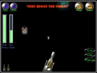 Динамичная, хорошо оформленная, игра-shooter (стрелялка). В качестве атакующих объектов можно использовать любые предметы (изображение размером 80х30 вставляется через буфер обмена).