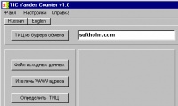 "Программа для определения тИЦ - тематического индекса цитирования Яндекса для сайтов. TIC Yandex Counter позволяет выбрать файл и получить значения тИЦ для всех содержащихся в нем веб-серверов Также предусмотрена возможность извлечения WWW адресов из текстовых файлов и Web-страниц.