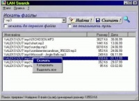 LanSearch - "...единственное предназначение этой программы - поиск файлов по локальной сети. Поиск ведется по всем доменам и/или рабочим группам и соответcвенно по всем компьютерам."
