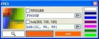Полезная утилита для web-мастеров. Позволяет увеличить часть экрана и узнать цвет любой его точки. Все очень удобно. Для хранения полюбившихся цветов есть палитра. Она же позволяет быстро смешать нужные цвета, или задать плавный переход между ними. С выбранным цветом, «на лету» выполняется одна из выбранных операций — подбор ближайшего WEB цвета, вычисление оттенка серого или инверсия. Для просмотра кода цвета, Вы можете создать шаблон исходя из собственных предпочтений, национальности и религиозных убеждений. Очень политкорректная утилита. Поддерживаются RGB и HSB представления цвета. Многие операции можно проделать лишний раз не дёргая мышку, раз уж от неё оторвались. Все операции с клавиатурой легки и интуитивно понятны. Не требует установки.